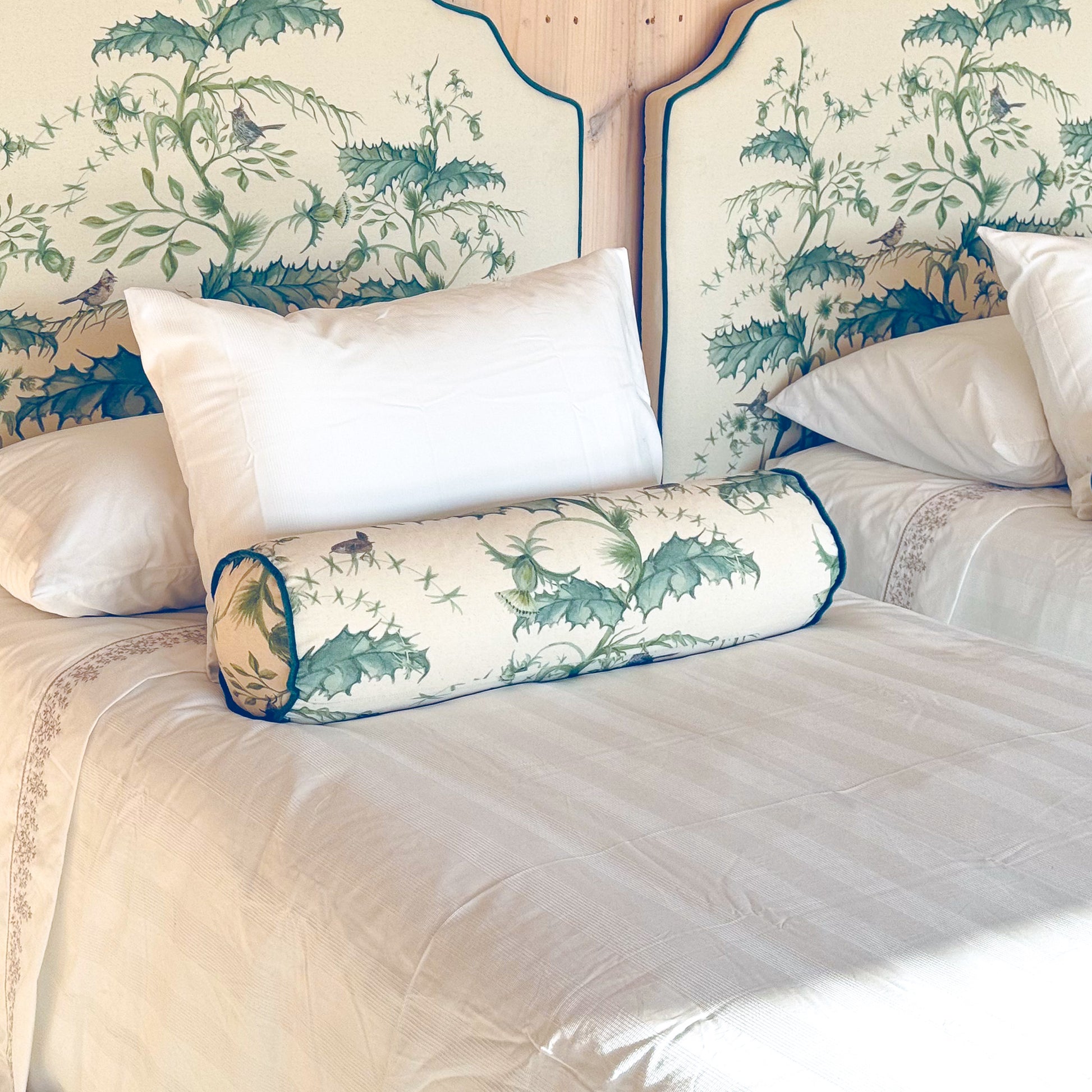 Dale un toque creativo y único a tu espacio con este cojín en formato tubo, hecho a mano con tapices de alta calidad y terminaciones cuidadas.