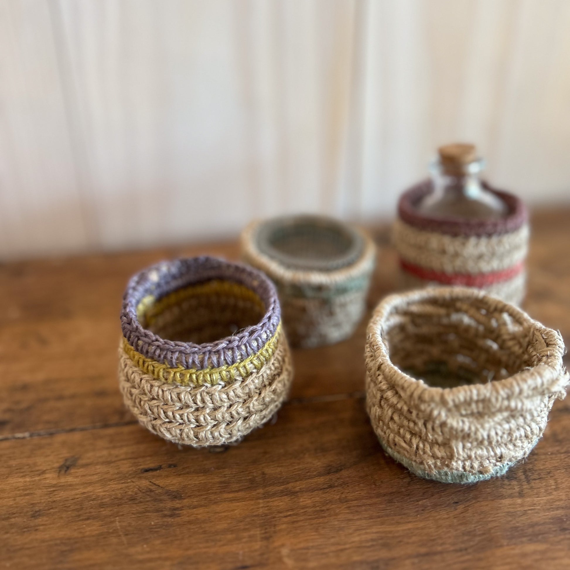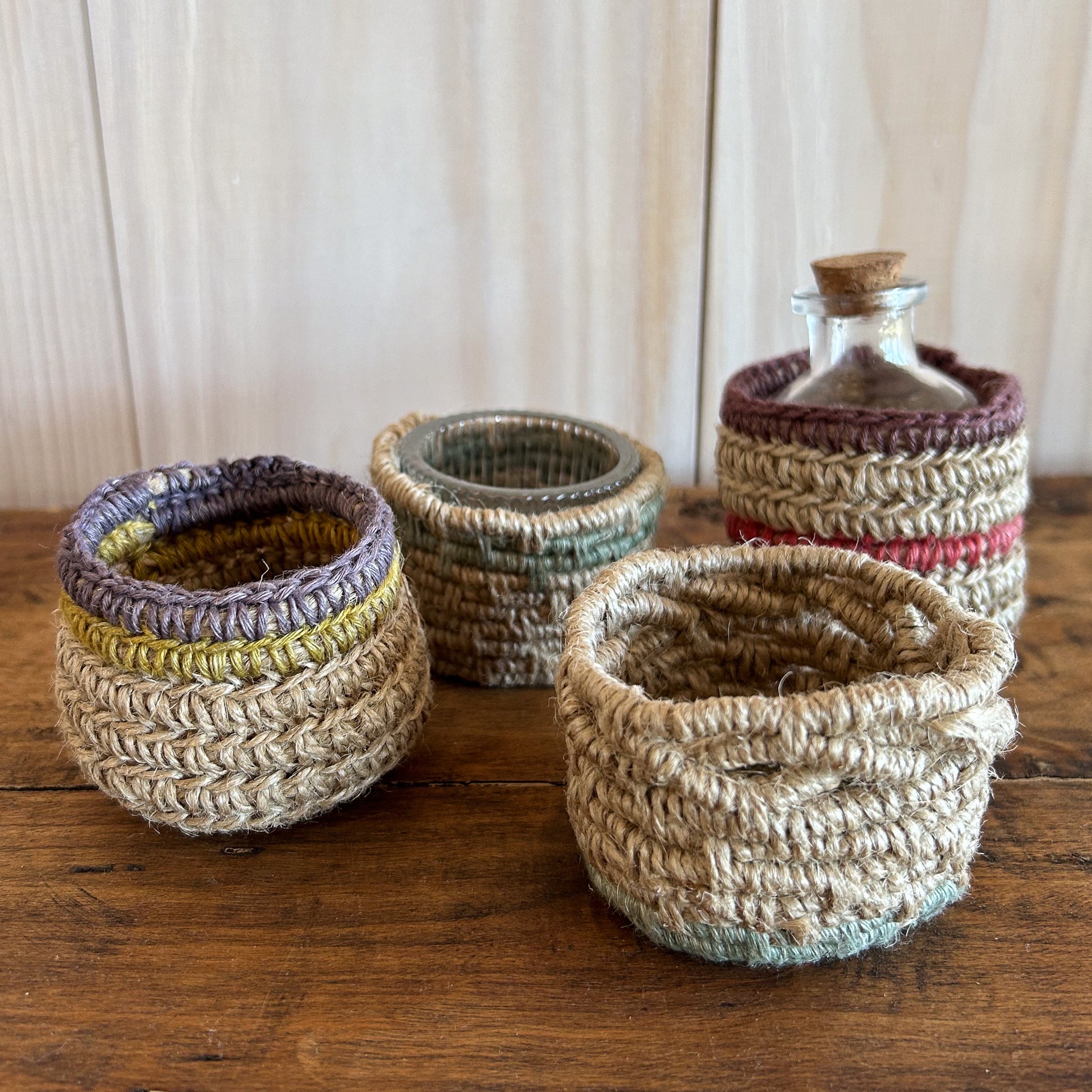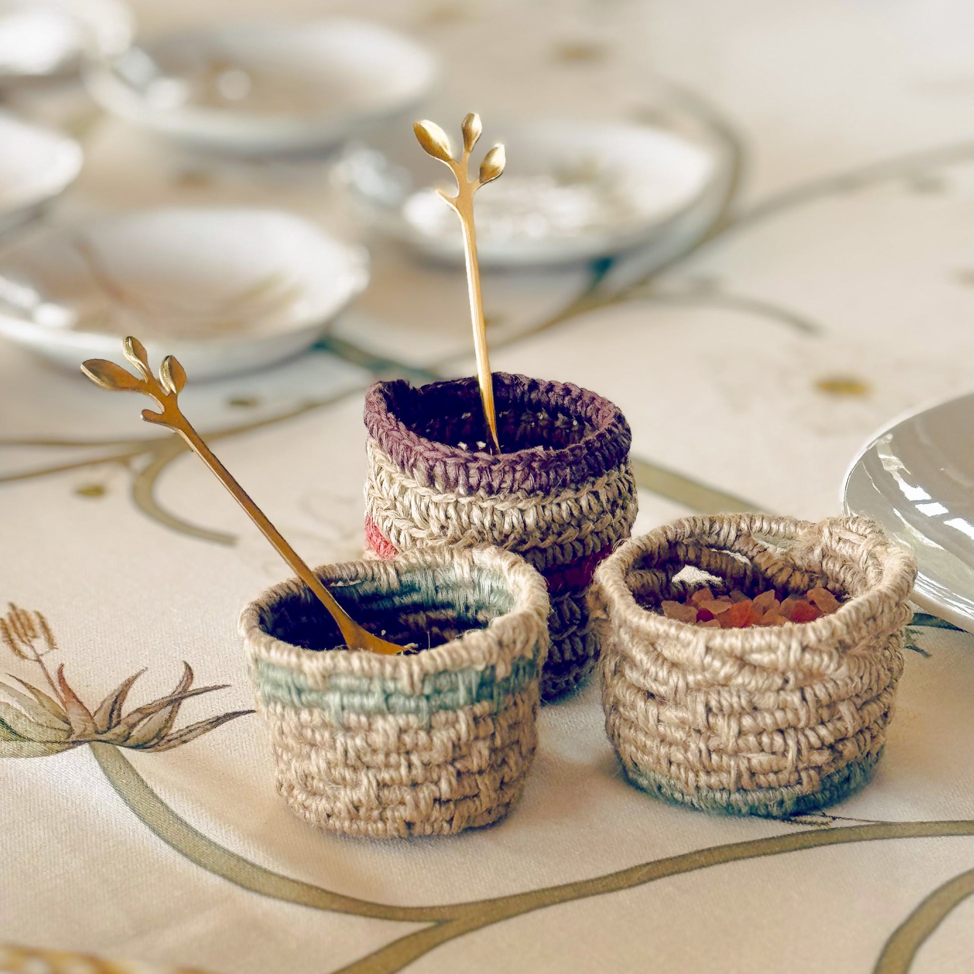 Tus especias a la mesa en este especiero pequeño 100% artesanal, tejido a mano con pocillo de vidrio incluido.