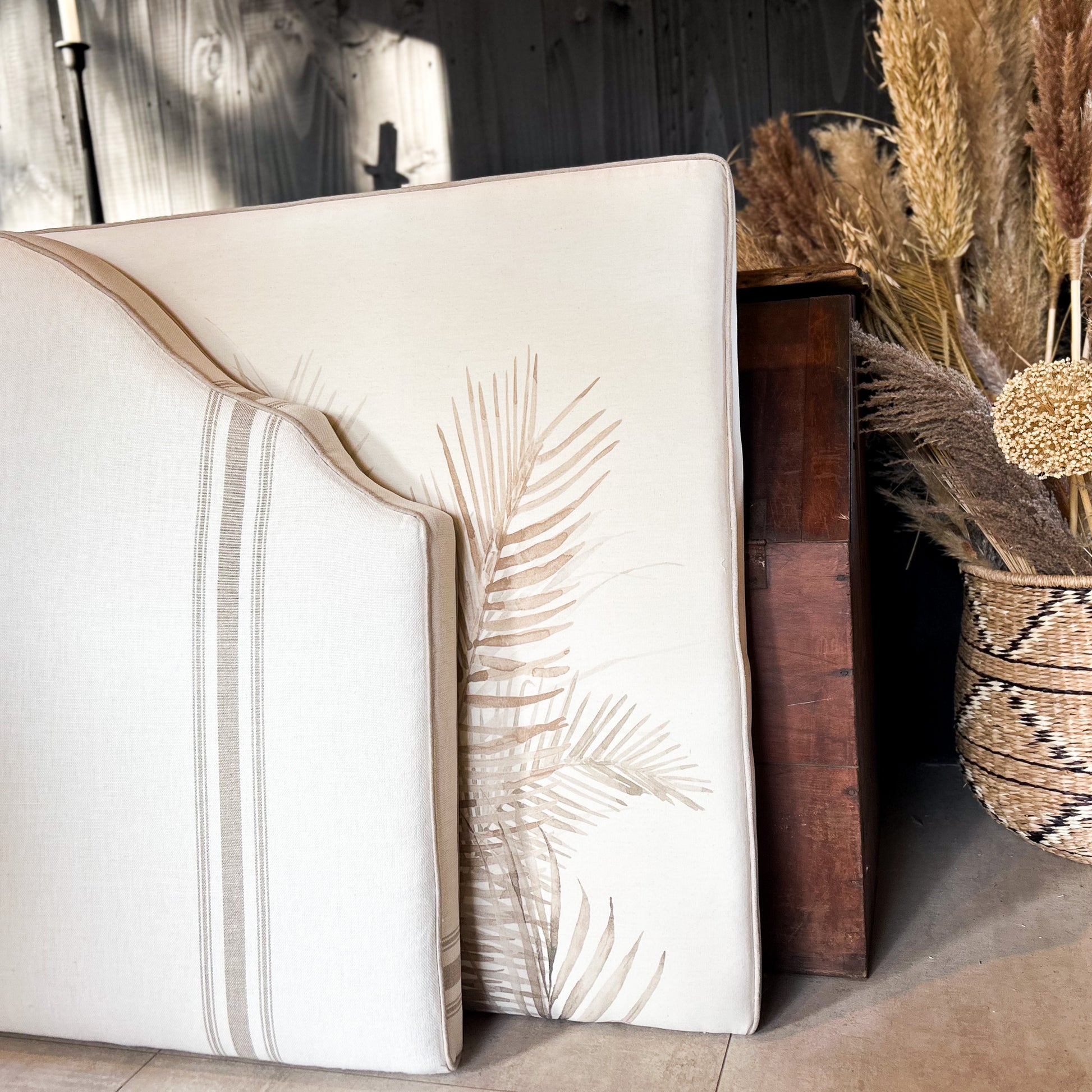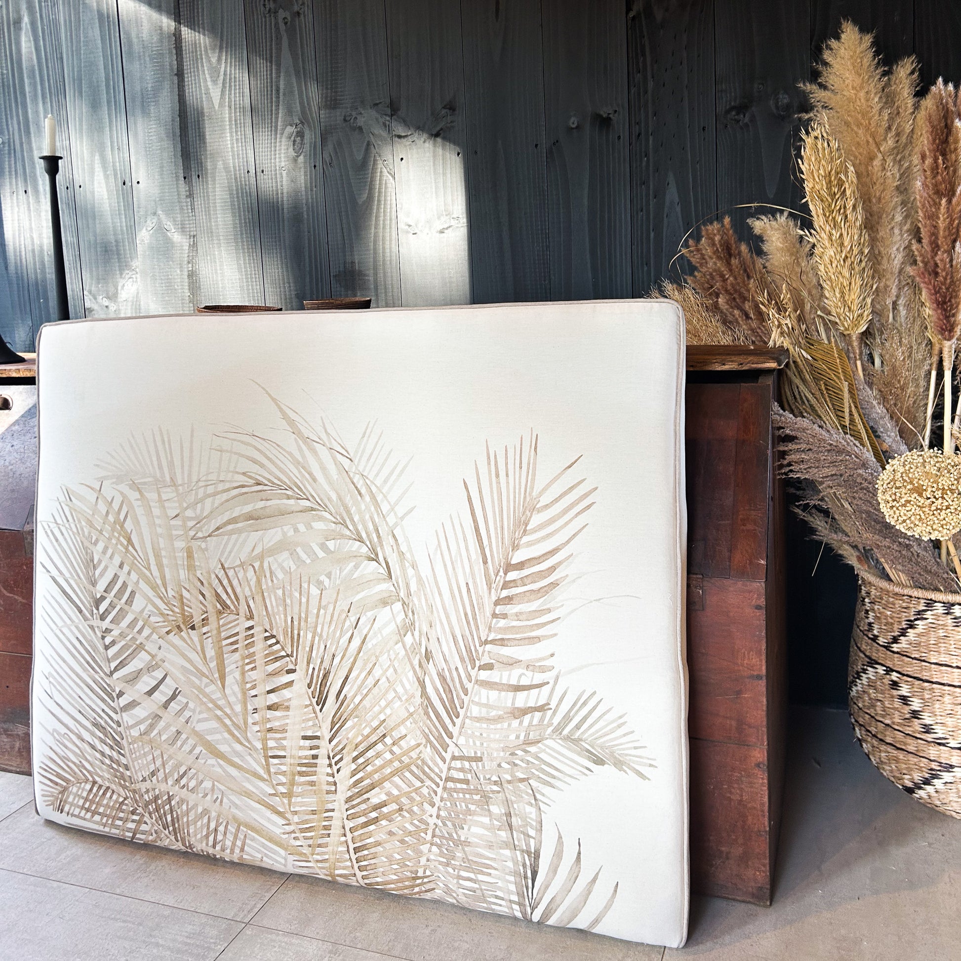 Transforma tu dormitorio con diseño exclusivo con este respaldo de la Colección Palma de The Bloom, fabricado a mano en tamaños personalizados.